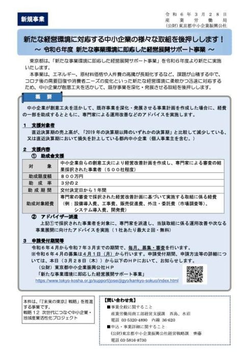 公益財団法人東京都中小企業振興公社の「新たな事業環境に即応した経営展開サポート事業」 (経営改善計画策定による経営基盤強化支援)