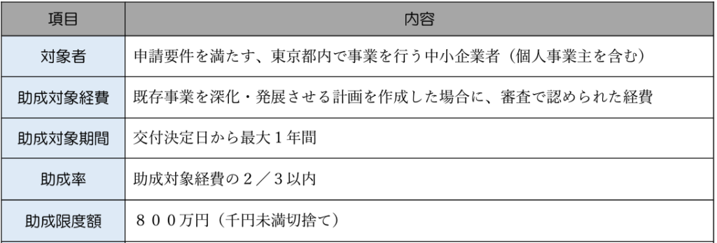 ポストコロナ等における事業環境の変化を課題と捉え、対応策として、事業者が創意工夫のもと「これまで営んできた事業の深化又は発展(下表参照)」に取り組み、これが経営基盤の強化につながると認められた場合に、当該取組に必要な経費の一部を助成します。